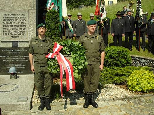 [4]Zum Gedenken der gefallenen Kameraden der Gebirgs- und Fallschirmjägertruppe, 16. Mai 2009; http://www.kameradschaftedelweiss.at/seiten/ortsverbaende/feldbach/berichte/kameradengedenken/2009/bericht_kameradengedenken_2009.htm