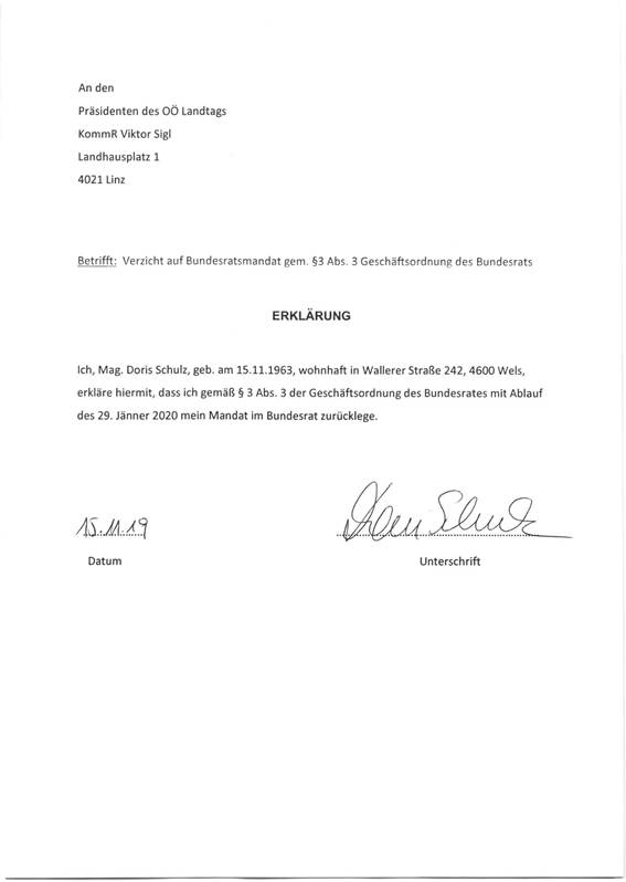 Schreiben des Präsidenten des Oberösterreichischen Landtages betreffend Mandatsverzicht der Bundesrätin Mag. Doris Schulz und eines Ersatzmitglieds des Bundesrates sowie Wahl eines Mitglieds und eines Ersatzmitglieds des Bundesrates ........................................................................ 46