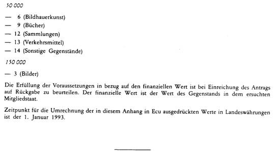 3. Noch nicht eindeutig geklärt ist die Frage von Entschädigungsansprüchen, wenn die Herausgabe auf Grund dieses Bundesgesetzes ohne Entschädigungsverpflichtung des ersuchenden Staates (§ 14 Abs. 1) erfolgen muß. Eine diesbezügliche Judikatur (auch des Europäischen Gerichtshofes), was im Sinne des Art. 9 der Richtlinie als „erforderliche Sorgfalt“ zu gelten hat, steht noch aus.