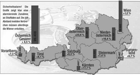 Unsicherheitsgefühl wächst: Nachhaltig drückt sich die negative Kriminalitätsentwicklung im abnehmenden subjektiven Sicherheitsgefühl der Bevölkerung aus: 45 % der Wiener sind nachts nicht mehr gern allein in der Stadt unterwegs (IMAS laut Kronenzeitung vom 15. März 2007). Die Österreicherinnen und Österreicher empfinden die Zunahme von Kriminalität und Gewalt als massive Belastung. Die absolute Mehrheit von 64 Prozent bezeichnet diesen Bereich als ihre vordingliche und größte