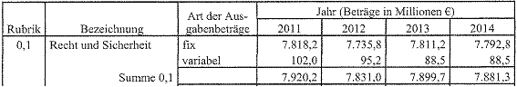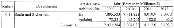 Gesamt sollen durch das neue Bundesfinanzrahmengesetz im Vergleich zum jetzt gültigen Bundesfinanzrahmengesetz (2009 – 2013) ca. 1,1 Milliarden in der Sicherheit (die Ressorts Inneres, Justiz und LV) eingespart werden!