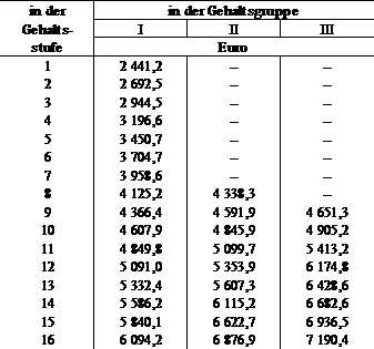 „(1) Das Gehalt des Staatsanwaltes wird durch die Gehaltsgruppe und in ihr durch die Gehaltsstufe bestimmt. Es beträgt: