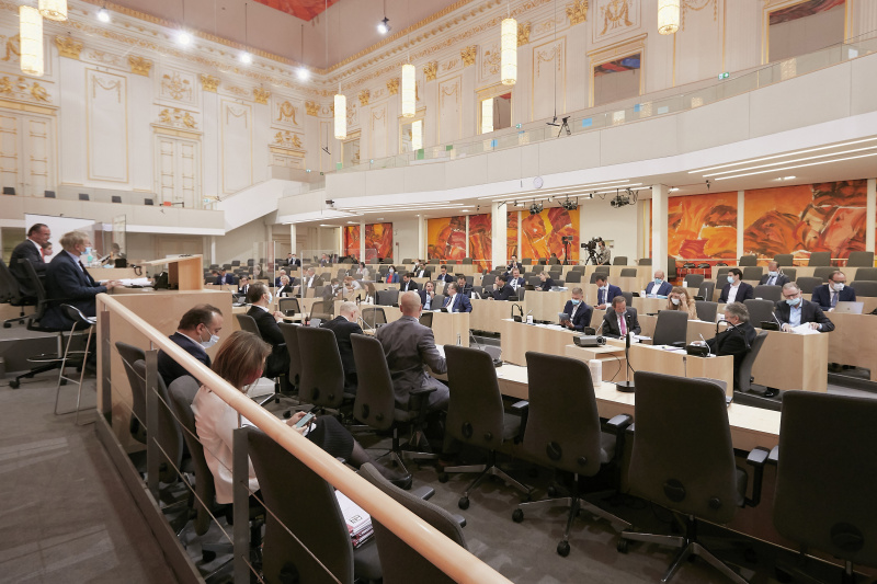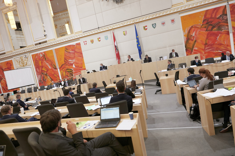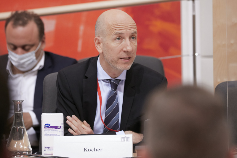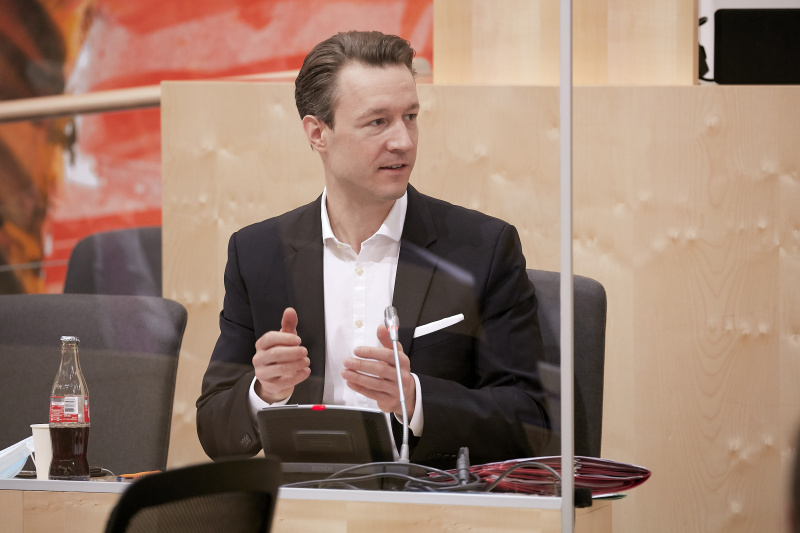 Blick Richtung SitzungsteilnehmerInnen. Vorsitzführung im Budgetausschus durch Nationalratsabgeordneten Gabriel Obernosterer (V) am Präsidium