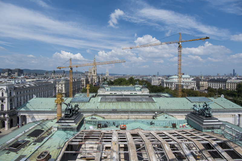 Geöffnetes Parlamentsdach über dem NR-Saal - Blick Richtung Rathauspark