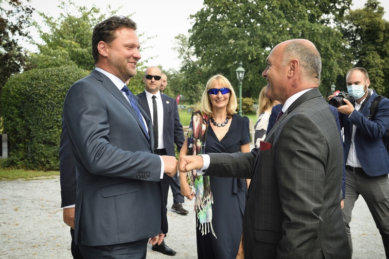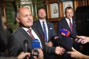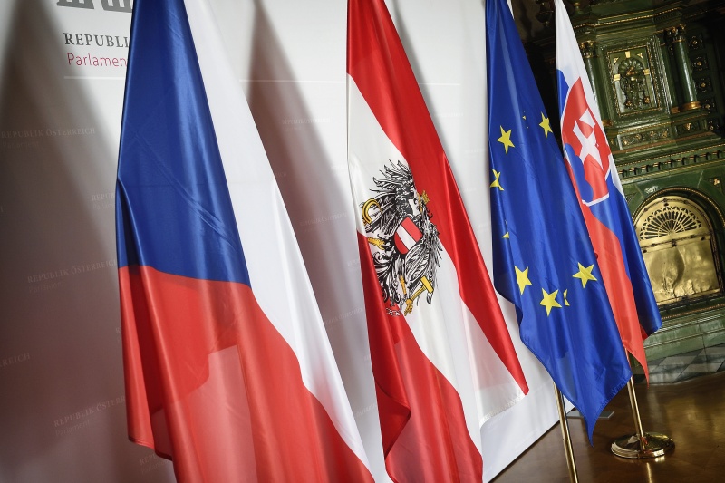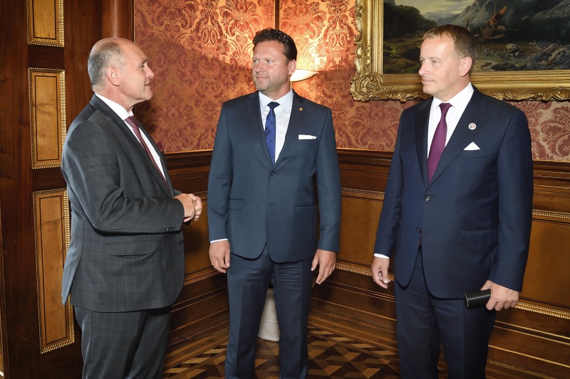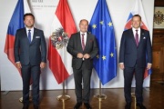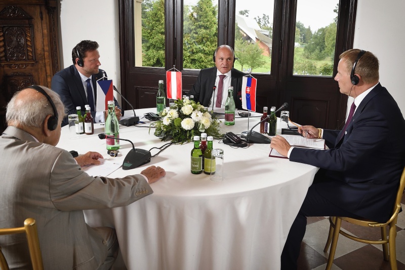 Von links: Nationalratspräsident Wolfgang Sobotka (V), Landeshauptfrau Johanna Mikl-Leitner (V), Präsident der tschechischen Abgeordnetenkammer Radek Vondracek, Landeshauptmann von OÖ Thomas Stelzer