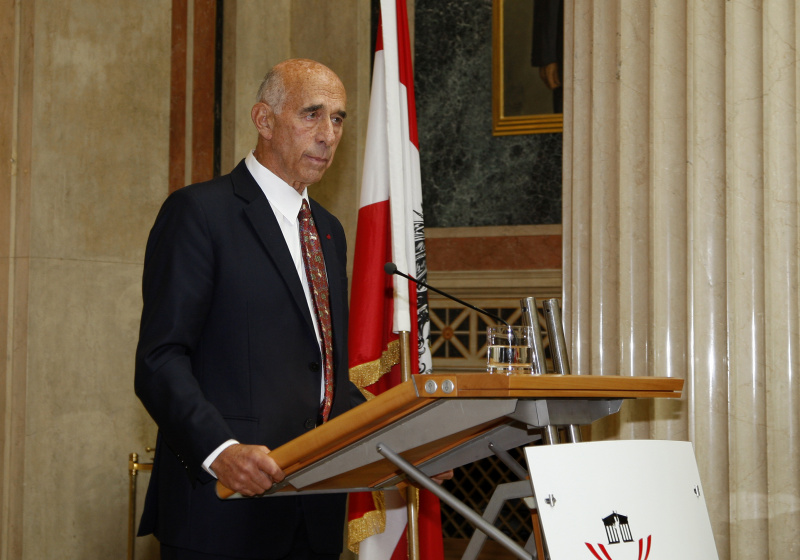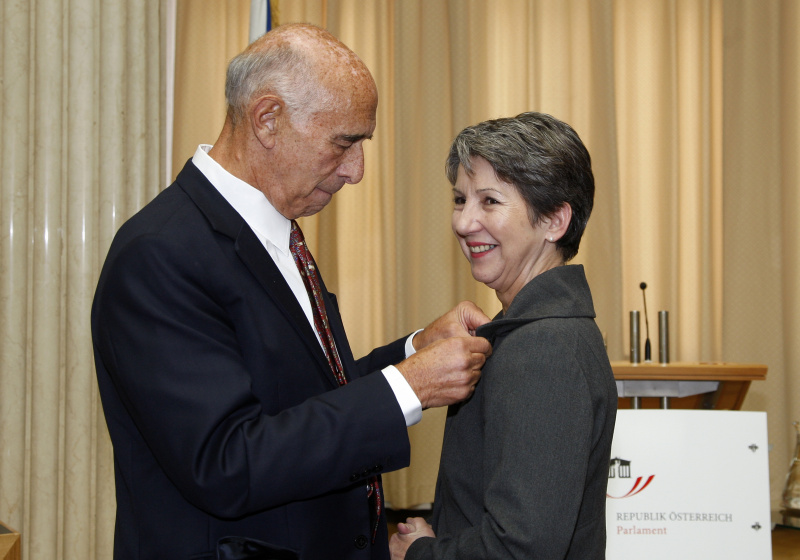 Überreichung des Ehrenzeichens. V.li.: Gerald Nagler und Mag.a Barbara Prammer - Nationalratspräsidentin