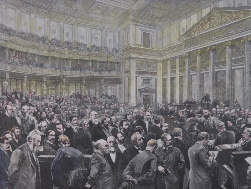 Tumult im Abgeordnetenhaus des Reichsrats im Zuge der Verhandlungen über die Sprachenverordnungen des Ministeriums Badeni