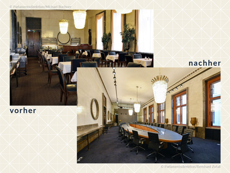 Die Parlamentskantine hat Platz gemacht – und zwar für Lokal 6. Hier finden künftig Ausschusssitzungen, internationale Termine oder Demokratie-Workshops statt.