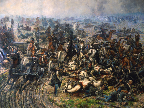 In der Schlacht bei Königgrätz am 3. Juli 1866 trafen österreichische Truppen und ihre sächsischen Verbündeten auf die preußische Armee. Der Sieg der Preußen besiegelte das Ende der österreichischen Großmachtstellung in Deutschland. Das Monumentalgemälde "Die Batterie der Toten" von Václav Sochor zeigt den Kampf einer Artilleriebatterie, die unter größten Verlusten den Rückzug der österreichischen Truppen deckte.