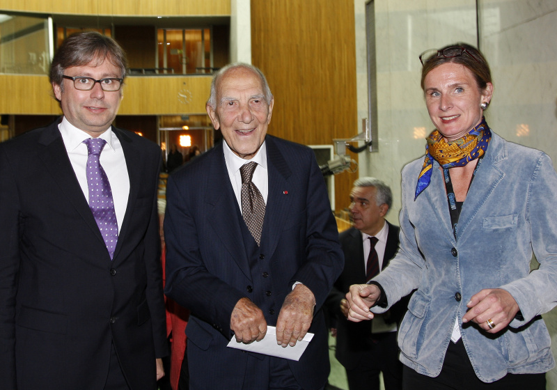 Dr. Alexander Wrabetz - ORF-Generaldirektor, Stephane Hessel und Mag.a Natalie Iwanowytsch - Parlamentsdirektion