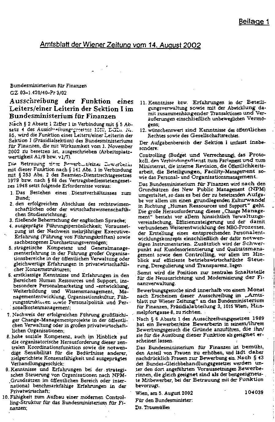 lediglich im Bereich der Zentralleitung Funktionen ausgeschrieben worden,