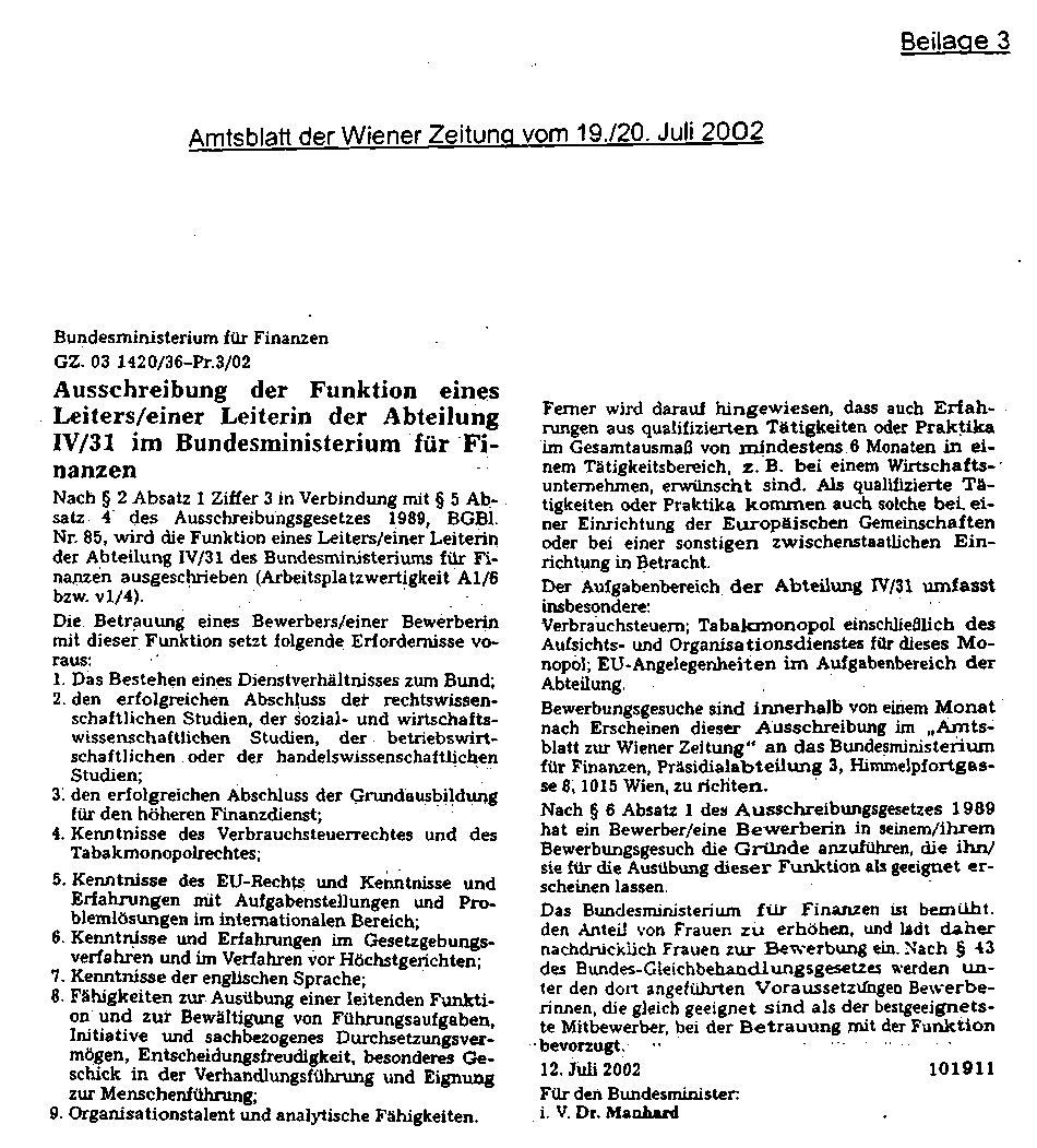 - ein drittes Vorstandsmitglied bei der österreichischen Bundesfinan-