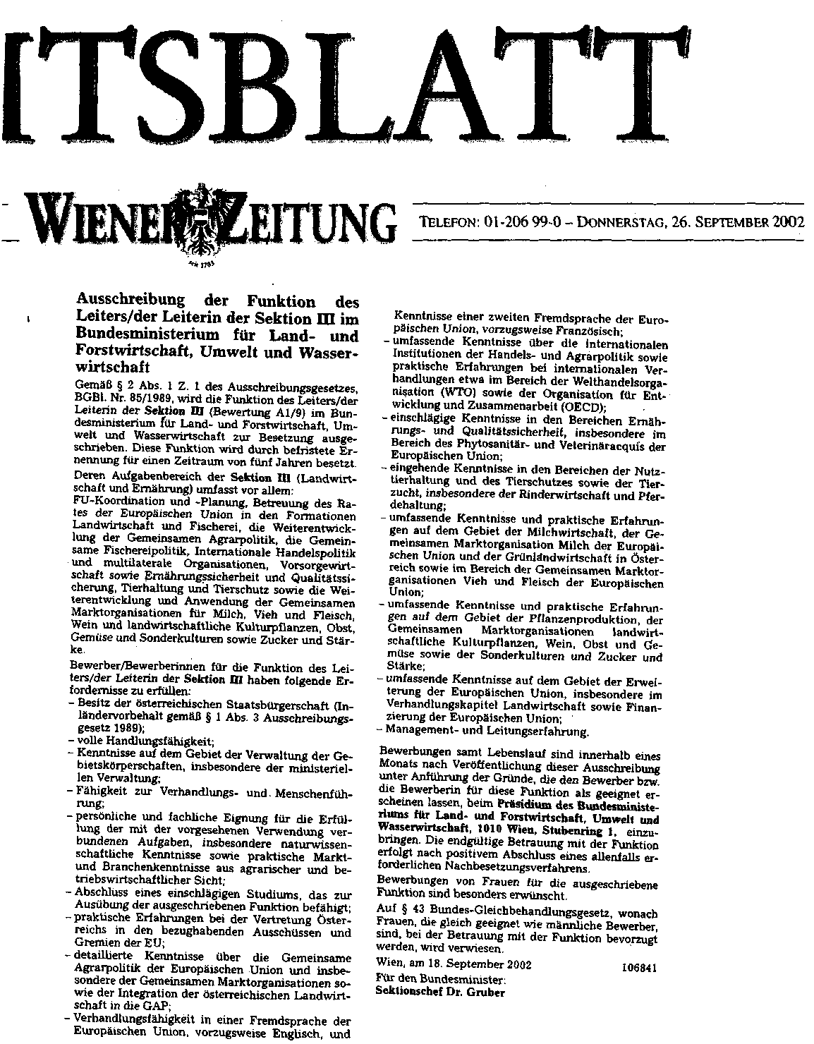 Im Zeitraum vom 9. 9. bis 13. 11. 2002 wurde DI Andrä RUPPRECHTER zum Leiter der