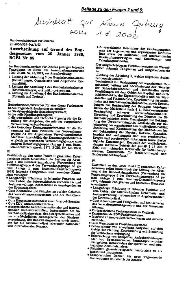 Leitung d. Büros f. Internationale Beziehungen des BVT