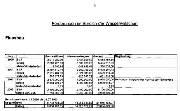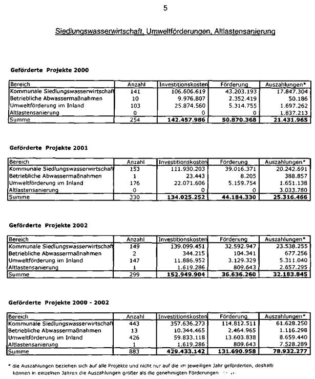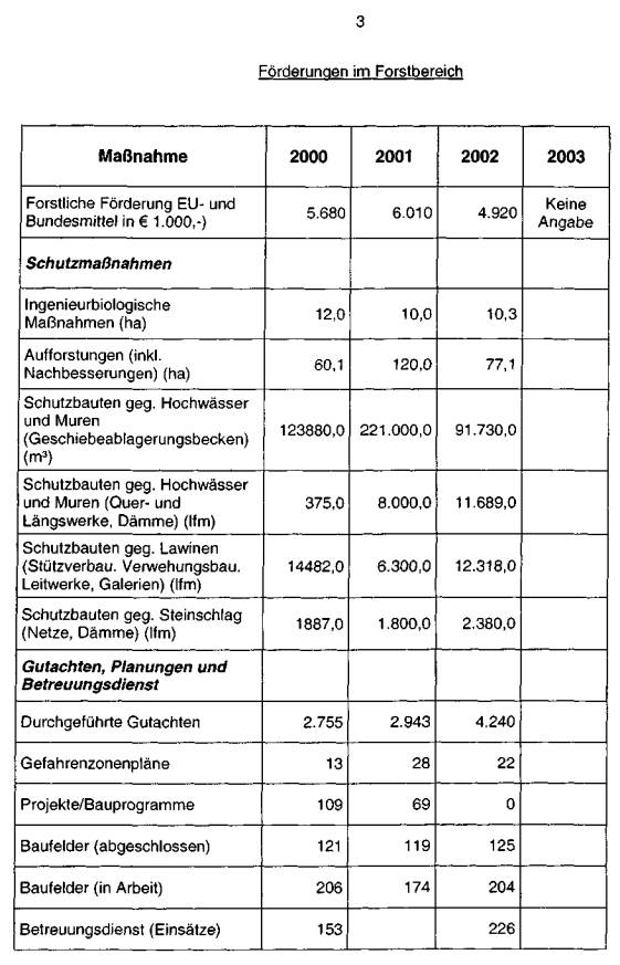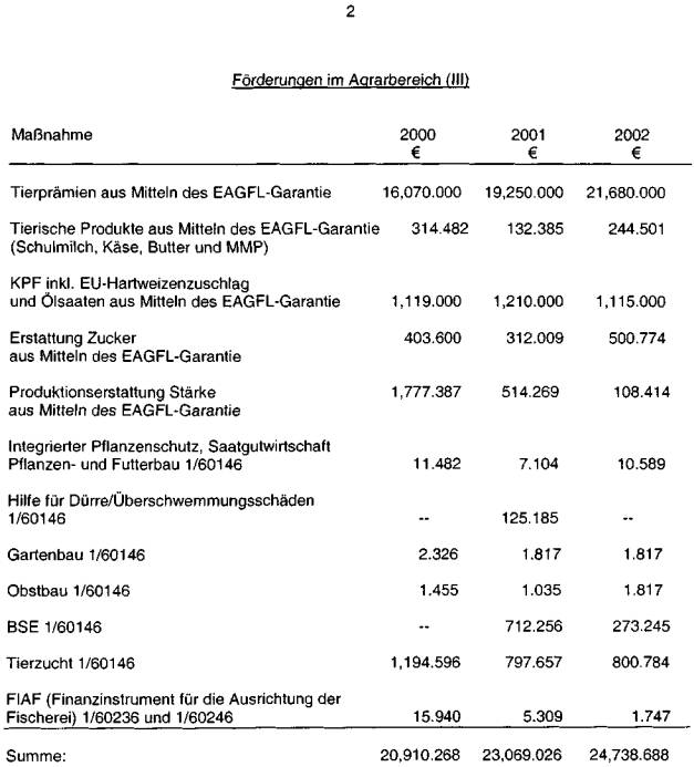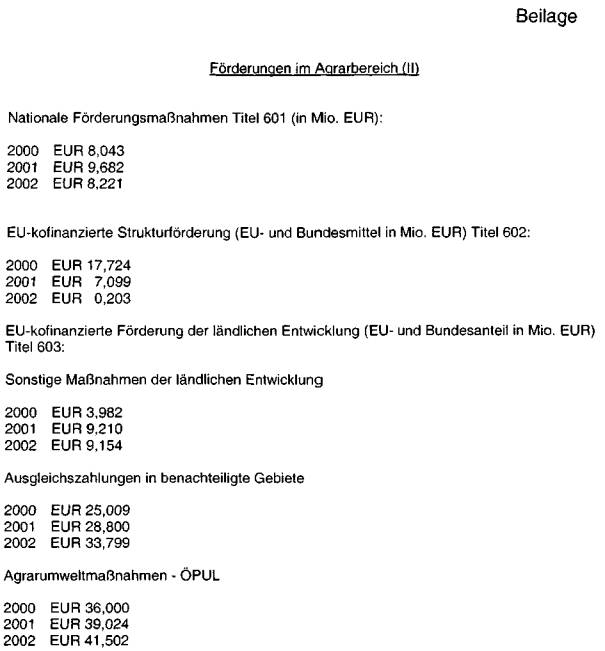 Die budgetären Leistungen (in Euro) für die Jahre 2000 bis 2002 sind nachfolgend darge-