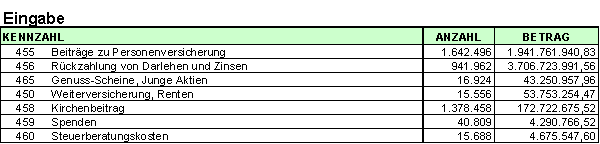 Die Anzahl der Fälle, in denen bei den Arbeitnehmerveranlagungen für das Jahr 2006 Sonderausgaben beantragt wurden, ist der nachstehenden Tabelle zu entnehmen: