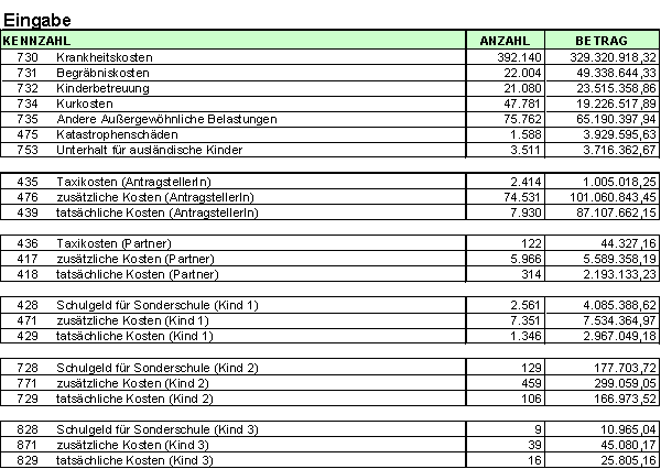 Die Anzahl der Fälle, in denen bei den Arbeitnehmerveranlagungen für das Jahr 2006 außergewöhnliche Belastungen beantragt wurden, ist der nachstehenden Tabelle zu entnehmen: