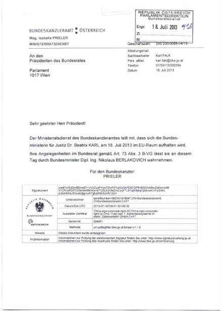 Der Ausschuss stellt nach Beratung der Vorlage am 16. Juli 2013 mit Stimmenmehrheit den Antrag, gegen den vorliegenden Beschluss des Nationalrates keinen Einspruch zu erheben.