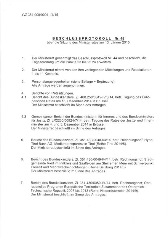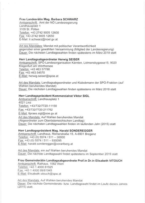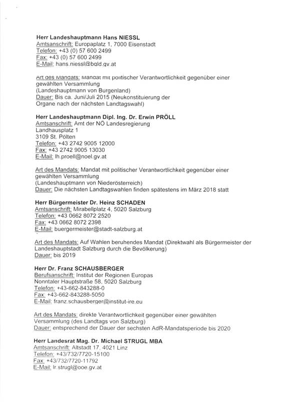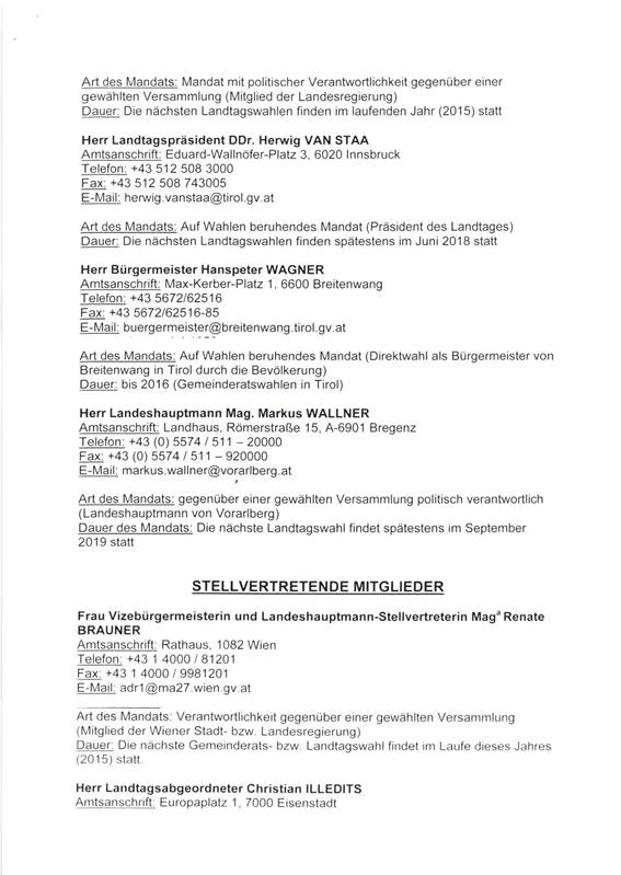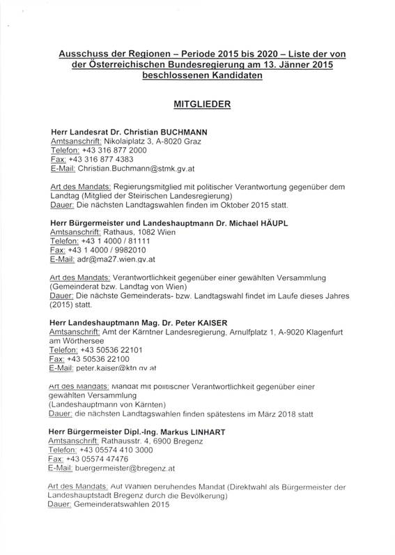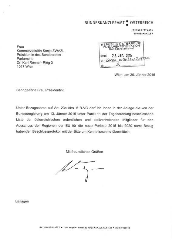 Schreiben des Bundeskanzleramtes gemäß Artikel 23c Abs. 5 Bundes-Verfassungsgesetz betreffend österreichische ordentliche und stellvertretende Mitglieder für den Ausschuss der Regionen der EU für die neue Periode 2015 bis 2020 48