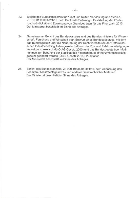 3. Punkt: Beschluss des Nationalrates vom 21. Jänner 2015 betreffend ein Bundesgesetz, mit dem das Beamten-Dienstrechtsgesetz 1979, das Gehaltsgesetz 1956, das Vertragsbedienstetengesetz 1948, das Richter- und Staatsanwaltschaftsdienstgesetz, das Landeslehrer-Dienstrechtsgesetz, das Landesvertragslehrpersonengesetz 1966, das Land- und forstwirtschaftliche Landeslehrer-Dienstrechtsgesetz, das Land- und forstwirtschaftliche Landesvertragslehrpersonengesetz, das Pensionsgesetz 1965, das Bundesbahngesetz, das Bundes-Bedienstetenschutzgesetz und das Finanzprokuraturgesetz geändert werden (454 d.B. und 457 d.B. sowie 9317/BR d.B. und 9320/BR d.B.) ...................... 89