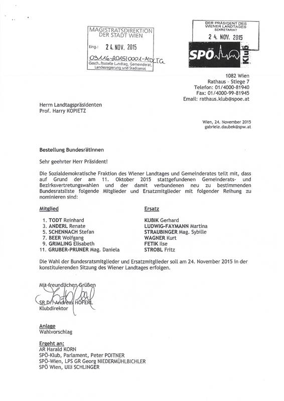 Der entsprechende Wahlvorschlag der SPÖ-Fraktion liegt mir ebenfalls vor. Dieser lautet auf: