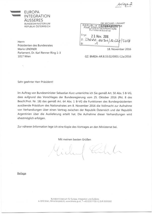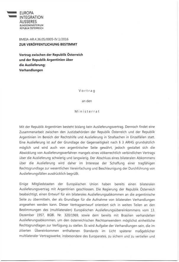 Aufnahme von Verhandlungen über den Abschluss des Vertrages zwischen der Republik Österreich und der Republik Argentinien über die Auslieferung und