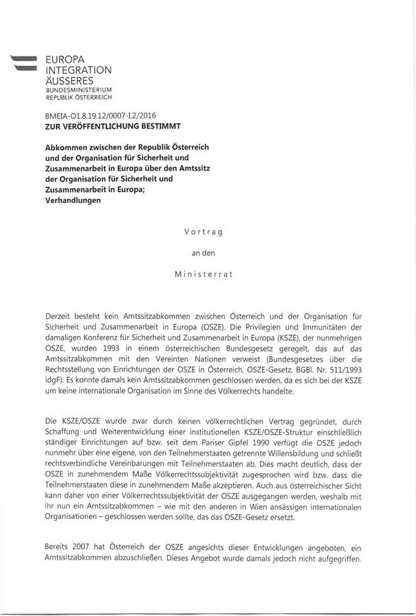 Abkommen zwischen der Republik Österreich und der Organisation für Sicherheit und Zusammenarbeit in Europa