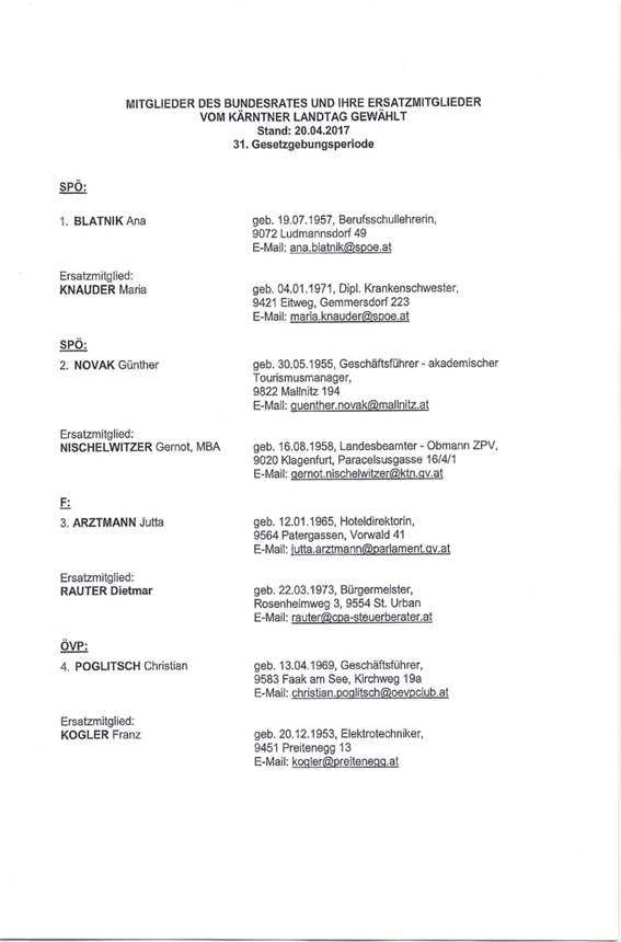 Schreiben des Präsidenten des Kärntner Landtages betreffend Wahl eines Ersatzmitgliedes in den Bundesrat ........................................................................................................................................... 9