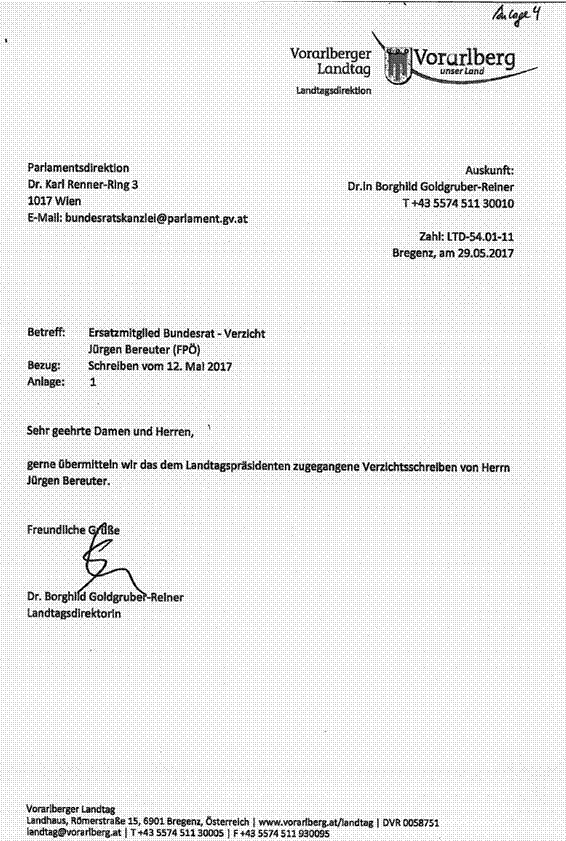 Schreiben des Vorarlberger Landtages betreffend Wahl eines Ersatzmitgliedes in den Bundesrat ............................................................................................................................... 31