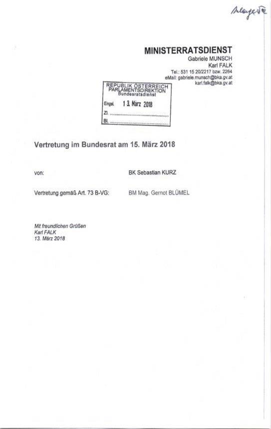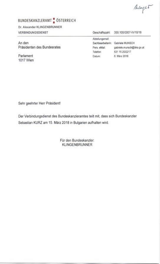 Schreiben des Bundeskanzleramtes betreffend den Aufenthalt eines Mitglieds der Bundesregierung in einem anderen Mitgliedstaat der Europäischen Union ............................................................. 50