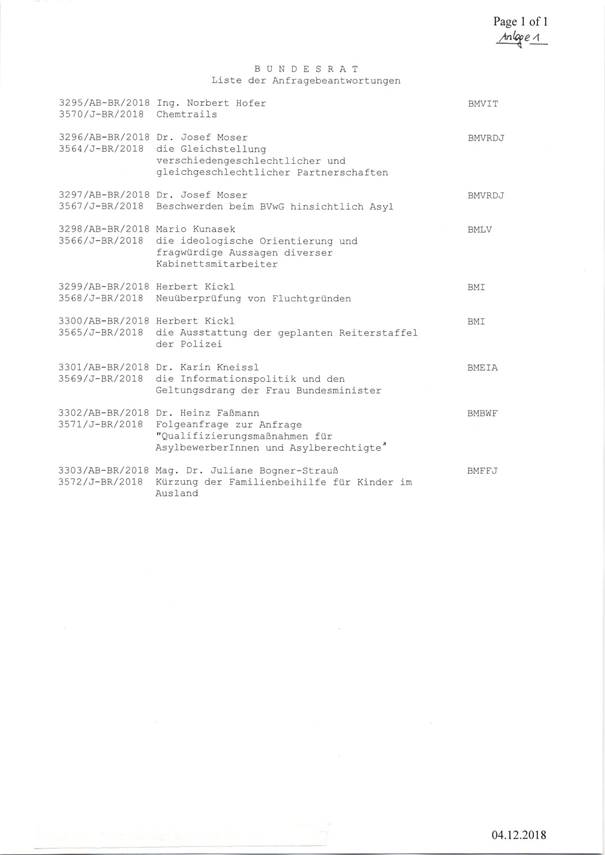 Vizepräsident Ewald Lindinger: Ich gebe noch bekannt, dass seit der letzten Sitzung beziehungsweise in der heutigen Sitzung insgesamt zwölf Anfragen, 3590/J-BR/2018 bis 3601/J-BR/2018, eingebracht wurden.
