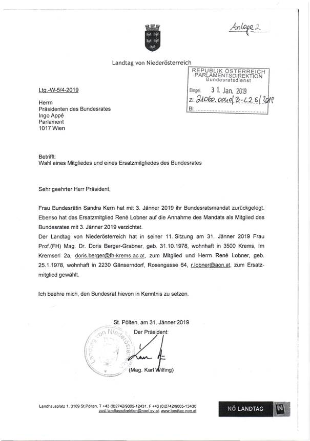Schreiben des Präsidenten des Niederösterreichischen Landtages betreffend Mandatsverzicht der Bundesrätin Sandra Kern sowie eines Ersatzmitglieds des Bundesrates beziehungsweise Wahl eines Mitglieds und eines Ersatzmitglieds des Bundesrates .................................................... 51