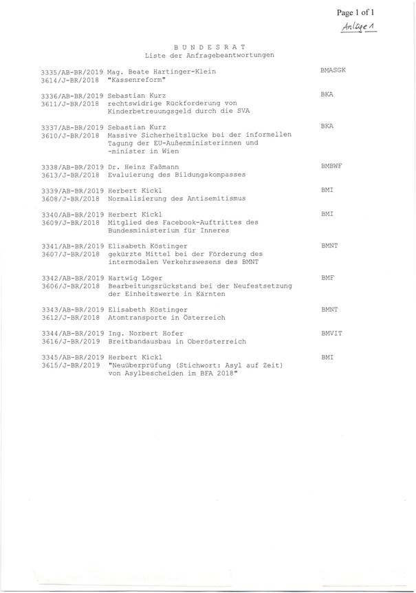 Vizepräsident Hubert Koller, MA: Ich gebe noch bekannt, dass seit der letzten beziehungsweise in der heutigen Sitzung insgesamt 15 Anfragen, 3627/J-BR/2019 bis 3641/J-BR/2019 eingebracht wurden.