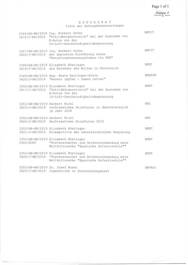 Präsident Ingo Appé: Ich gebe bekannt, dass seit der letzten beziehungsweise in der heutigen Sitzung insgesamt sechs Anfragen, 3642/J-BR/2019 bis 3647/J-BR/2019, eingebracht wurden.