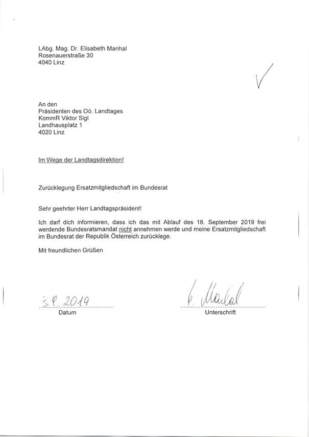 Schreiben des Präsidenten des Oberösterreichischen Landtages betreffend Mandatsverzicht des Bundesrates Anton Froschauer sowie eines Ersatzmitglieds des Bundesrates beziehungsweise Wahl eines Mitglieds und eines Ersatzmitglieds des Bundesrates .................................................. 48
