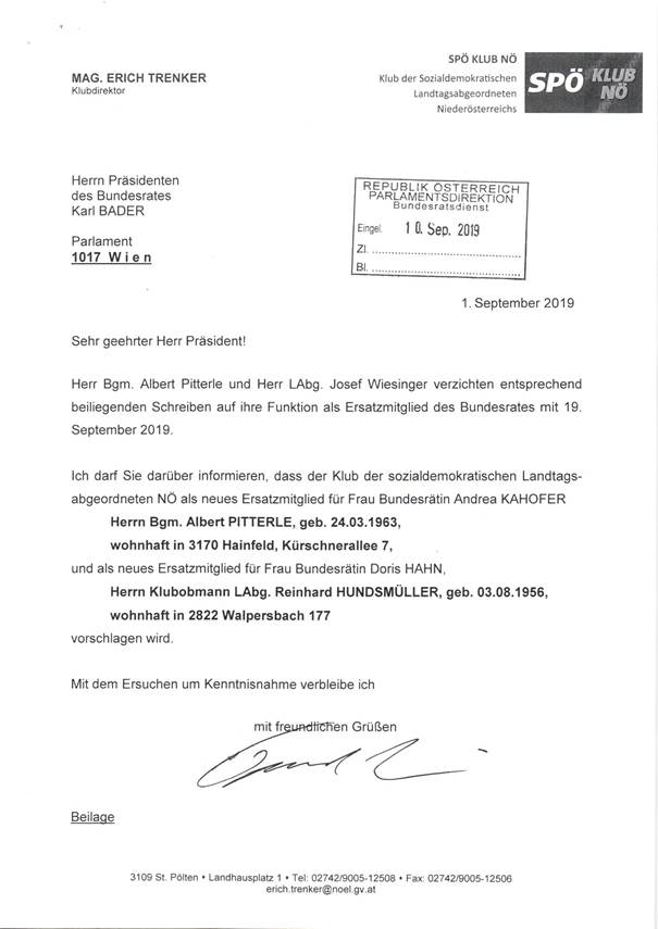 Erklärung der Landeshauptfrau von Niederösterreich Mag. Johanna Mikl-Leitner gemäß § 38 Abs. 3 GO-BR zum Thema „Nah an den Menschen. Bereit für die Zukunft“ – Bekanntgabe .......... 19