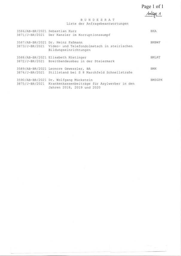 Vizepräsidentin Doris Hahn, MEd MA: Hinsichtlich der eingelangten und verteilten Anfragebeantwortungen,