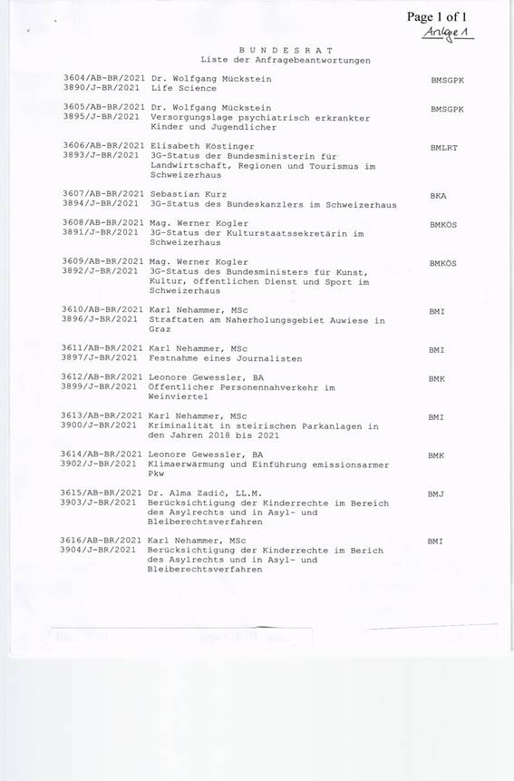 Präsident Dr. Peter Raggl: Hinsichtlich der eingelangten und verteilten Anfragebeantwortungen,