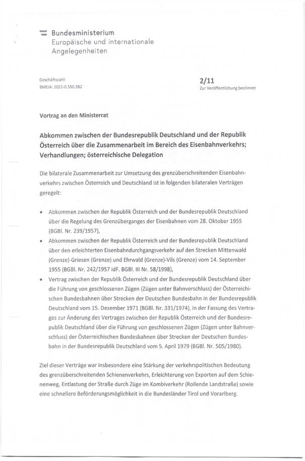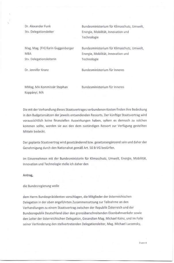 Schreiben des Generalsekretärs für auswärtige Angelegenheiten im Bundesministerium für europäische und internationale Angelegenheiten betreffend die Vollmacht zur Aufnahme von Verhandlungen über ein Abkommen zwischen der Republik Österreich und der Bundesrepublik Deutschland über die Zusammenarbeit im Bereich des Eisenbahnverkehrs (Anlage 6)