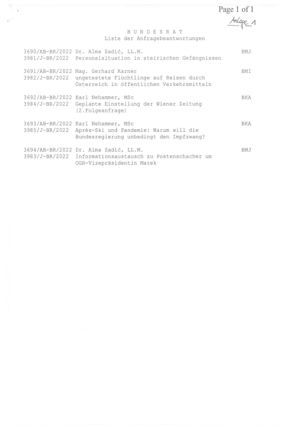 Präsidentin Mag. Christine Schwarz-Fuchs: Hinsichtlich der eingelangten und verteilten Anfragebeantwortungen,