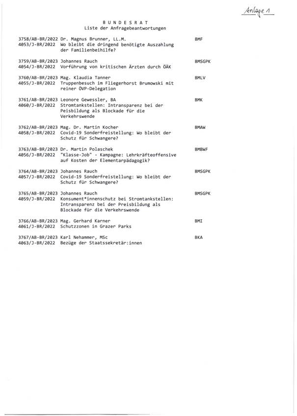 Vizepräsident Mag. Harald Himmer: Hinsichtlich der eingelangten und verteilten Anfragebeantwortungen,