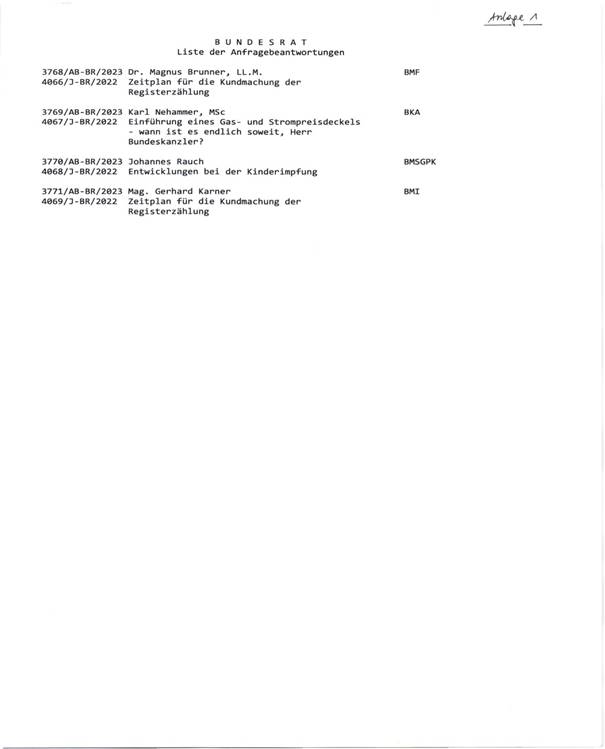 Vizepräsident Mag. Harald Himmer: Hinsichtlich der eingelangten und verteilten Anfragebeantwortungen,