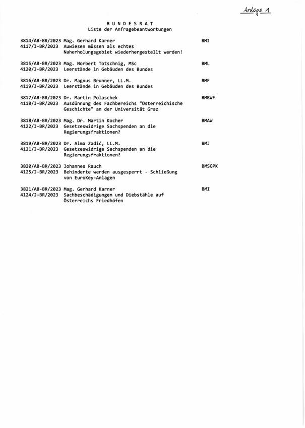 Präsidentin Mag.a Claudia Arpa: Hinsichtlich der eingelangten und verteilten Anfragebeantwortungen,