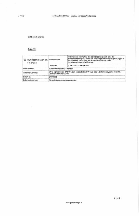 2. Unterrichtung gemäß Art. 50 Abs. 5 B-VG