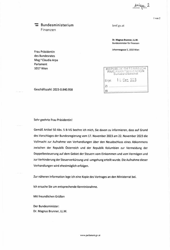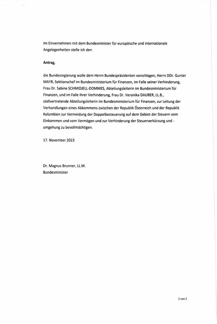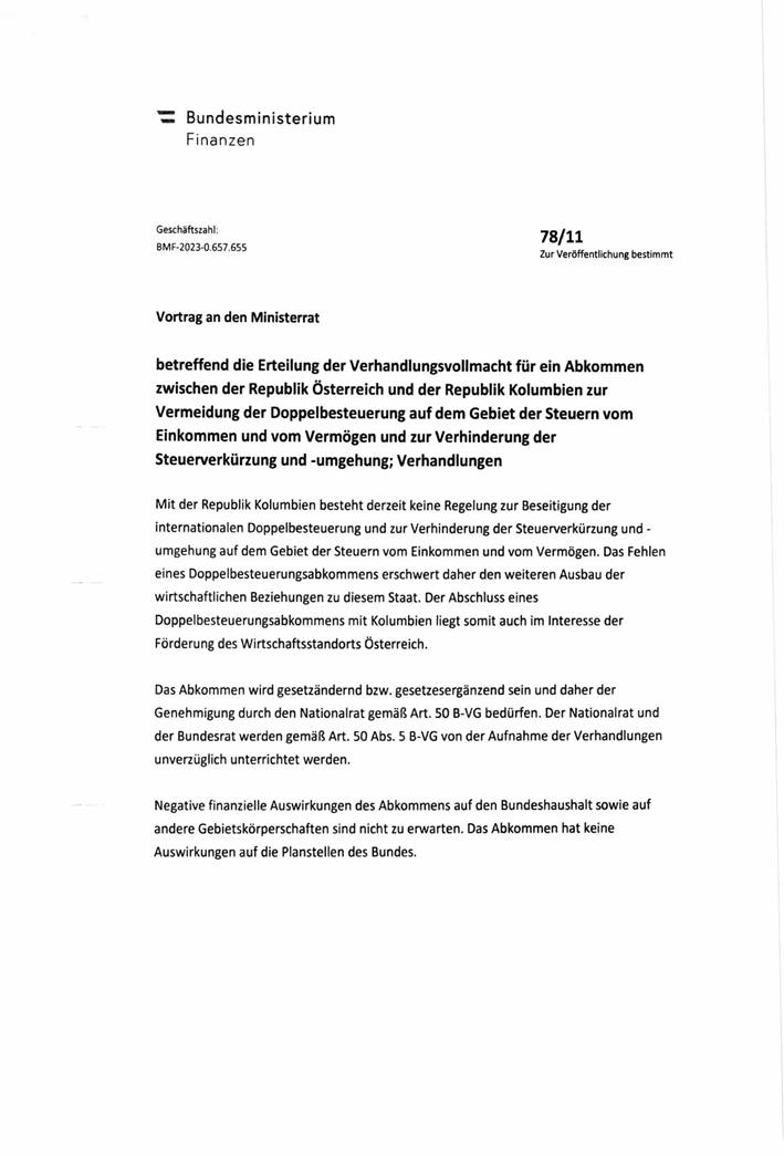 Abkommens zwischen der Republik Österreich und der Republik Kolumbien zur