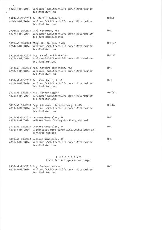 Präsident Mag. Franz Ebner: Hinsichtlich der eingelangten und verteilten Anfragebeantwortungen,