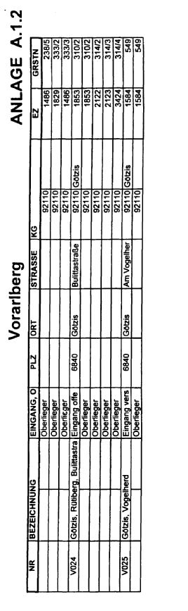 Jänner 2001 die restlichen Objekte der Anlage A. 1, mit 1. Jänner 2002 die im Bundesland