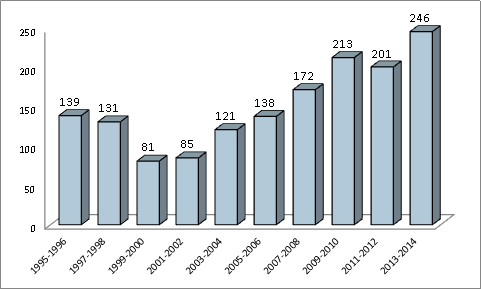 Andererseits erfolgt eine Beschreibung der Entwicklung der sozio-ökonomischen Situation über einen längeren Zeitraum mit einer Betonung auf Veränderungen seit dem letzten Berichtszeitraum 2011-2012, falls dies relevant ist. Idealerweise wird die Entwicklung seit Inkrafttreten des Bundesgesetzes zum Abbau der Benachteiligung von Frauen 1993 nachgezeichnet. Wo dies aufgrund mangelnder Datenlage nicht möglich ist, wurde versucht zumindest längere Zeitreihen zu erstellen bzw. die Entwicklung – etwa ab Mitte/Ende der 90er-Jahre – zu beschreiben.