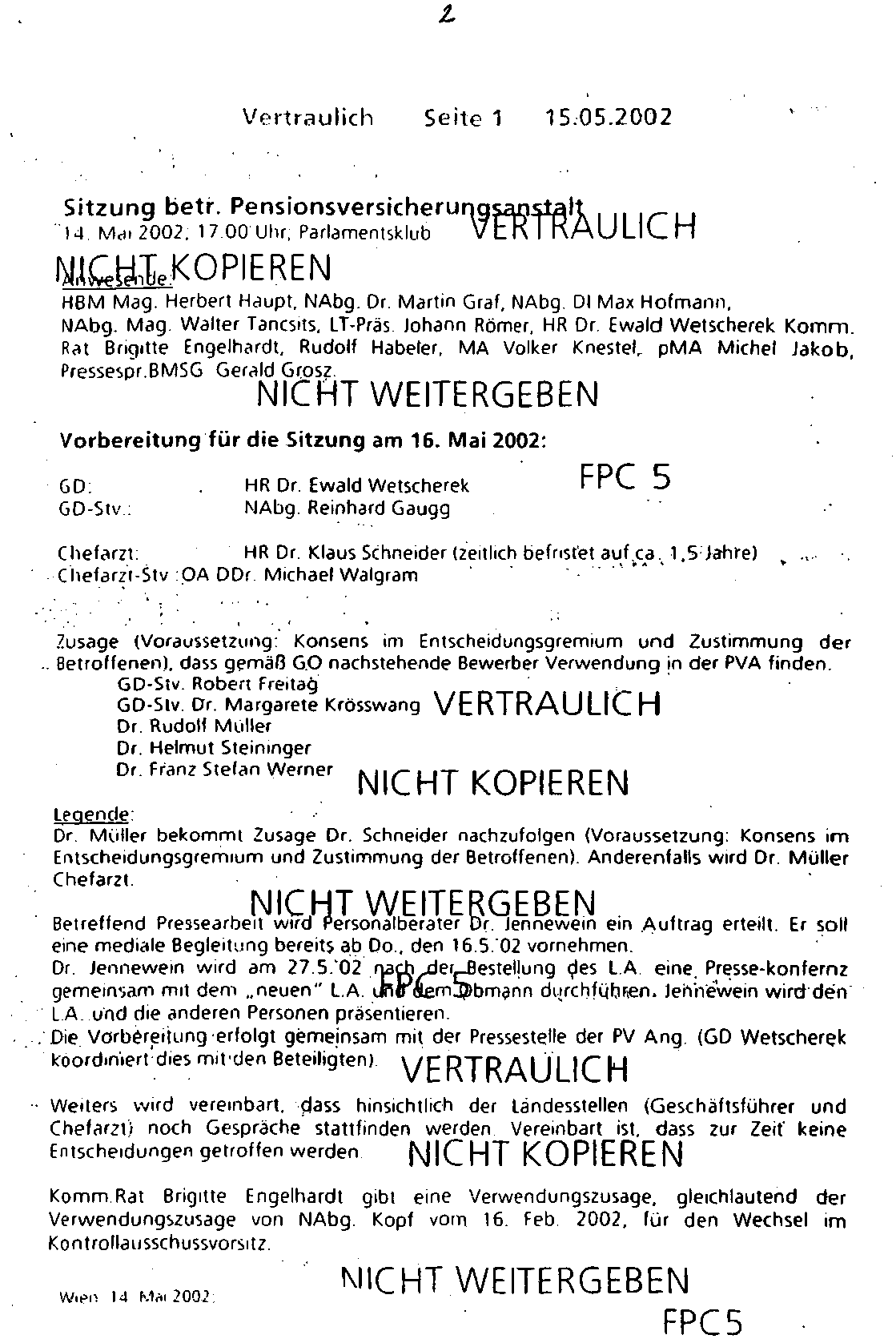 Am Tag darauf wurde ein neuer Aspekt bekannt, mit welchem Generaldirektor Wetscherek