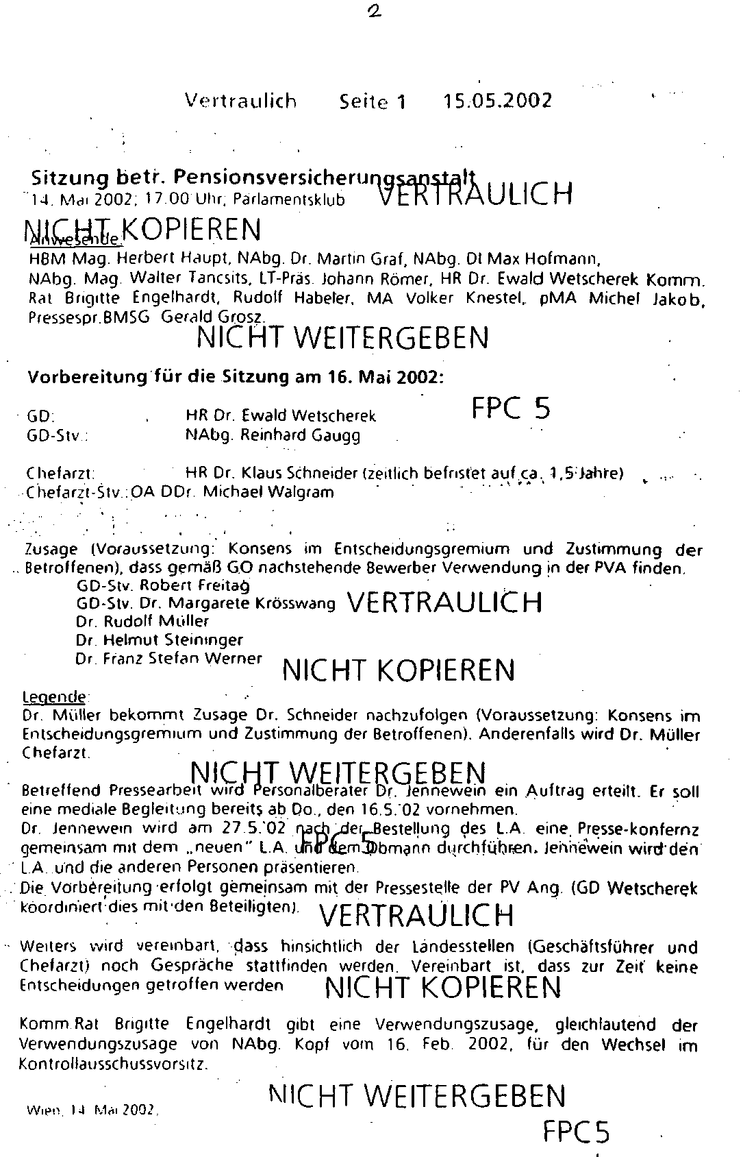 Am Tag darauf wurde ein neuer Aspekt bekannt, mit welchem Generaldirektor Wetscherek